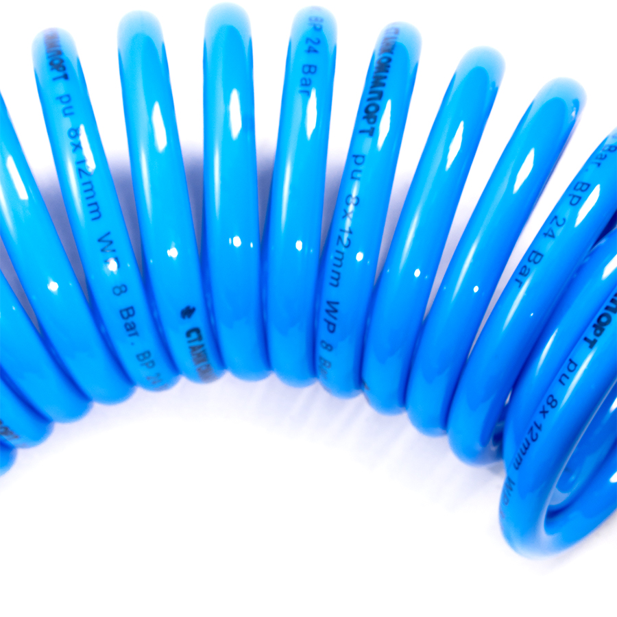 Шланг воздушный спиральный применяется для подачи воздуха от компрессора или линии сжатого воздуха к пневмоинструменту. За счет своей формы в виде спирали, шланг имеет достаточно компактный размер и не мешается под ногами.